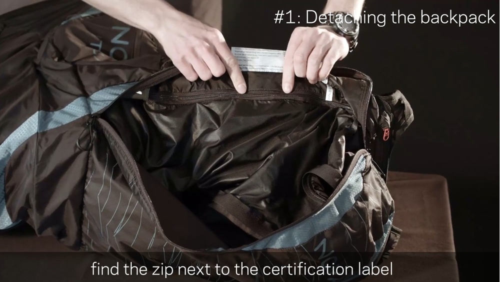 Das Retterfach unter dem Sitzbrett wurde an das Prinzip eines Tube Containers angelehnt und gewährleistet in Kombination mit dem passend zum Retterfach konstruierten Innencontainer reibungslose Auslösungen in alle Zugrichtungen. Der Verschluss ist maximal einfach zu bedienen und erfolgt durch Reißverschlüsse sowie eine Lasche mit zwei Ösen.