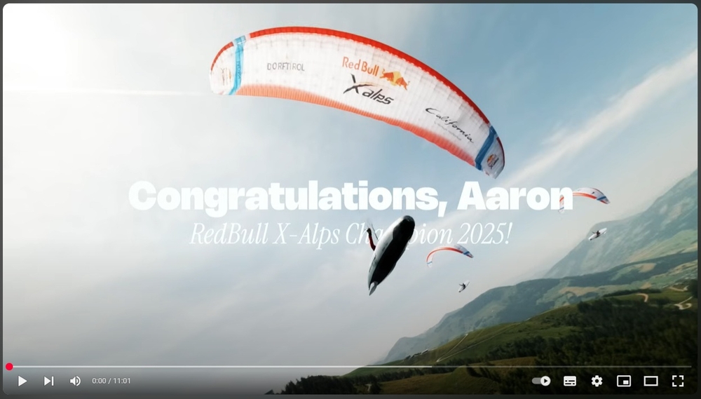 Aaron benutzte einen XENON 2 (18) und ein X-Pack 50. Der Siegerschirm wird in den kommenden Monaten auf Basis des Feedbacks der Athleten weiter verfeinert und dann in einer überarbeiteten Version auf noch höherem Leistungslevel erhältlich sein.